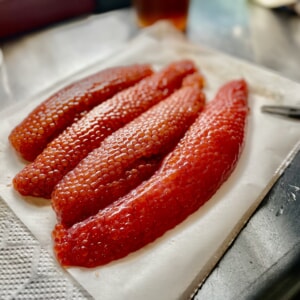 さて、前回大好評だった『⭐️生筋子の昆布〆』を仕込みますたぁ。鮮度抜群のとても綺麗な羅臼産の生の筋子を下処理し、羅臼昆布で〆ています。だんだんと粒が大きくなってきましたがイクラにして塩や醤油漬けにはせず、筋子本来の「生成り」を味わってもらいたい贅沢な一品。ハードな一週間を務め上げたご褒美に、是非。