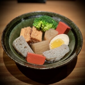 さて、春夏秋冬「出汁菜おでん」。現在定番は9種に、変わり種が15種以上と種類が多いですが、一人呑みのお客さんで、少量でいろいろ食したい方のために、『おまかせひとくちおでん』始めます。4〜5種類を少しずつ楽しめます。一人呑みに、是非🍢。